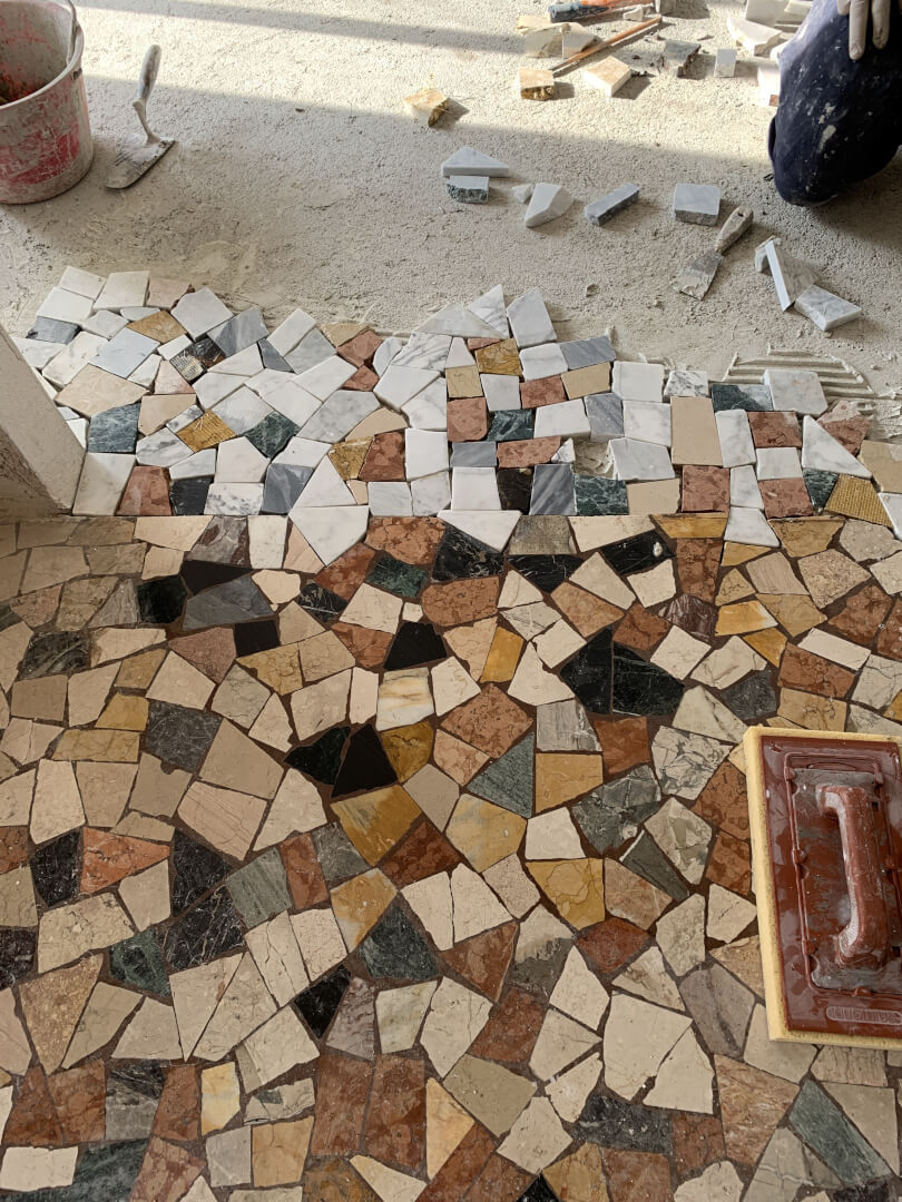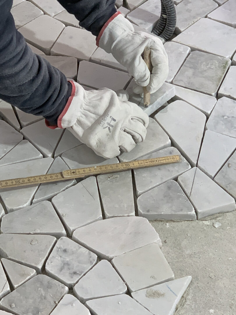 Preparing the marble pieces for the Palladiana flooring