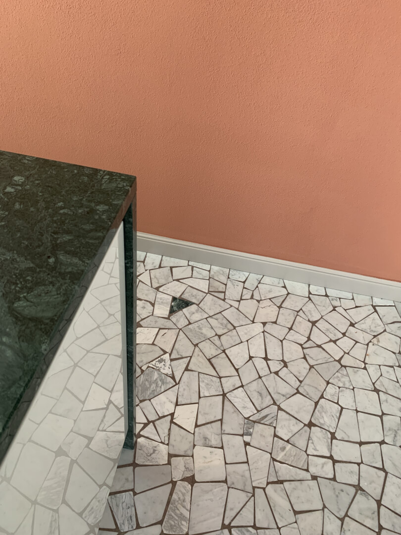 The new flooring is composed by Bianco Carrara and Grigio Bardiglio to name only a few, and the original Palladiana pieces flow into the new ones, creating  balanced and elegant interiors, where the new elements enhance the beauty of the past.