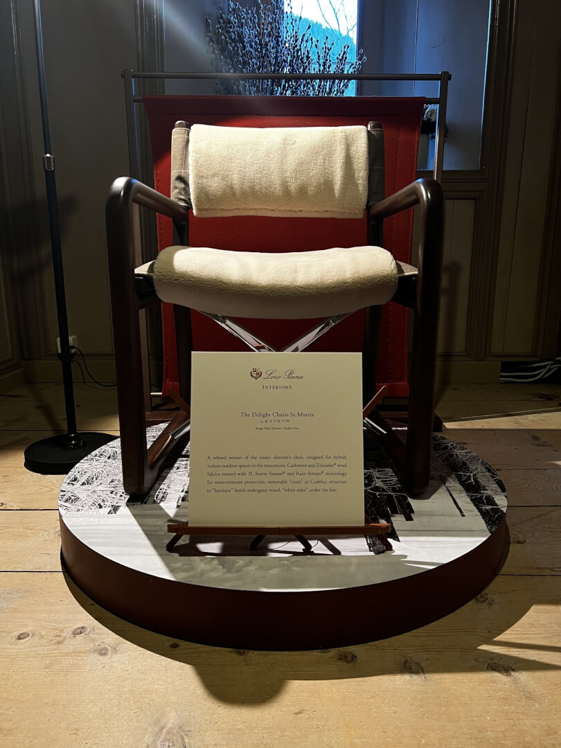 Loro Piana Interiors and Italian architect and designer Paola Navone, also Founder of Studio Otto, in collaboration with furniture maker Exteta, present the St Moritz version of The Delight Chairs.